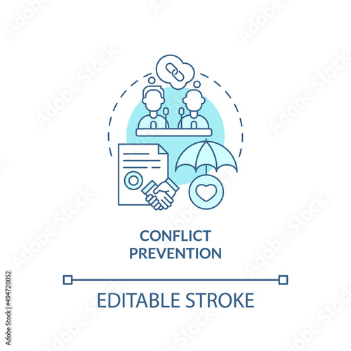 Conflict prevention turquoise concept icon. National safety and community security abstract idea thin line illustration. Isolated outline drawing. Editable stroke. Arial, Myriad Pro-Bold fonts used