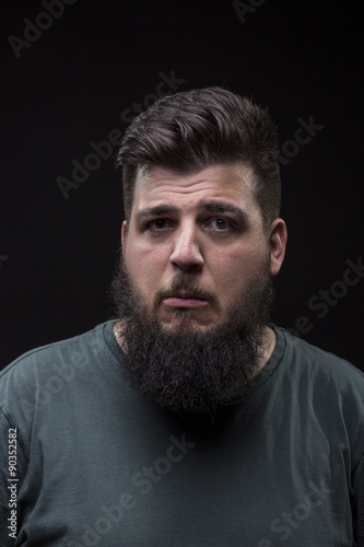 20s, black background, caucasian, moustache, adult, background, beard, black, black hair, closeup, clothing, confused, dark, face, front, front view, hair, head shot, hipster, male, moustache, portrait, shirt, studio, t-shirt, worried, worry, young