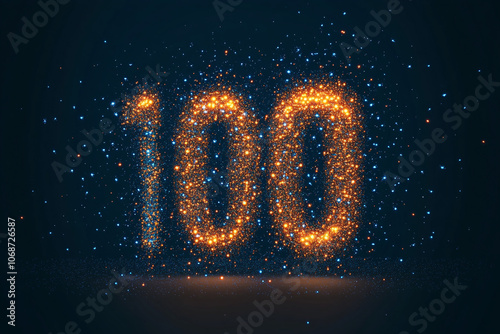 Connected digital particles forming a number "100" concept of likes, followers or fans count