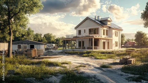 construction, building, house, illustration, design, blueprint, rendering, three-dimensional, model, lighting, texture, interior, exterior, structure, roofing, flooring, window, door, furniture, decor, fixture, environment, technology