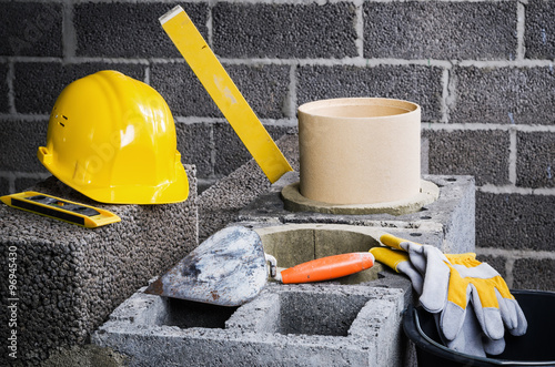 architecture, background, brick, build, building, ceramic, chimney, clay, closeup, construction, detail, drain, fire, fireplace, glove, hand, helmet, home, house, improvement, industry, installation, job, laying, level, making, manual, mason, masonry, material, modern, montage, nobody, occupation, pattern, pipe, professional, repair, shape, stack, structure, sweep, tool, top, trowel, wall, warehouse, work, men at work