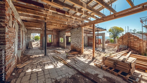 construction, house, building, site, work, brick, wood, under, unfinished, brickwork, renovation, project, remodel, repair, structure, interior, exterior, frame, beam, scaffolding, concrete, support, scaffold, rafter, working man, roof, rebuilding, home, development, industry, repair