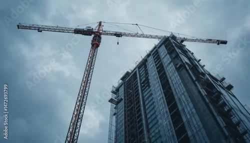 Construction Site: Tower Crane and Skyscraper Under Construction