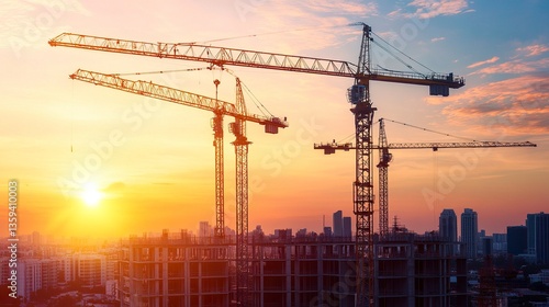 crane, construction, building, sky, industry, tower, architecture, site, steel, development, sunset, build, engineering, tall, blue, business, equipment, work, silhouette, urban, structure, built, high, city, activity