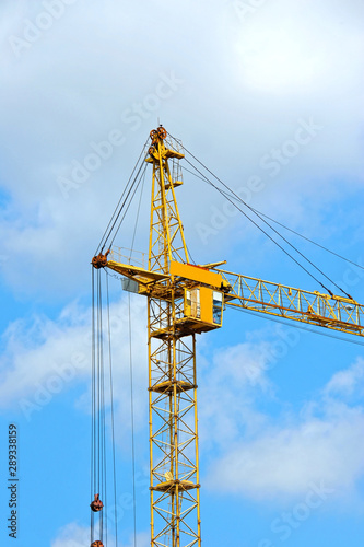 architecture, balance, blue, build, building, built, business, cabin, cable, construction, crane, development, device, engineering, equipment, girder, hoisting, industrial, industry, lift, lifting, load, loader, loading, machine, machinery, mover, site, sky, steel, tall, technology, tool, tower, transportation, up, vertical, winch, yellow