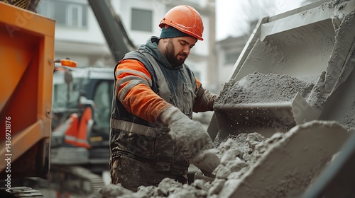 construction worker, concrete, hard hat, glove, shovel, shoveling, safety-gear, industrial, building, labourer, construction equipment