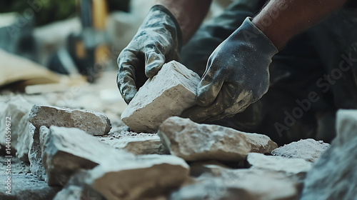 construction, men at work, stone, block, glove, hand, building, site, work, material, labor, tool, brick, masonry