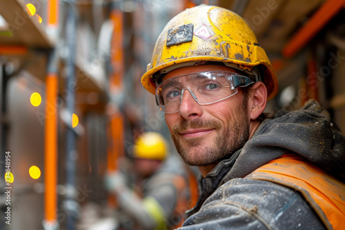 Construction worker in hard hat. Portrait of a laborer.