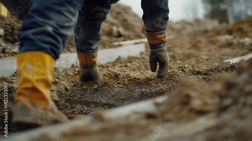 construction, men at work, boot, glove, mud, dirt, site, work, industrial, safety-gear, ground, dirtied, building, labor, construction site