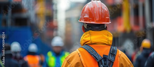 Construction Worker in Safety Gear at Busy Urban Construction Site