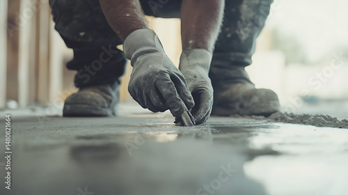 construction worker, concrete, floor, smoothing, boot, tool, construction site, industrial, labor, renovation, building