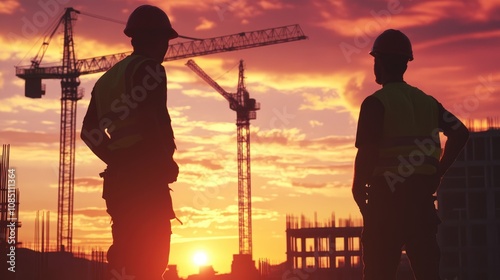 Construction Workers Silhouetted Against a Vibrant Sunset