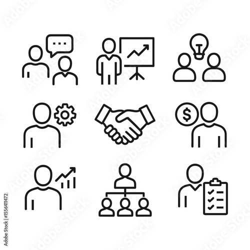icon, consulting, line, business, advice, strategy, management, professional, service, expertise, guidance, support, adviser, analyst, planning, solution, meeting, discussion, symbol, black, linear, presentation, communication, leadership, development, growth, partnership, collaboration, corporate, finance, client, client, coaching, training, success, vector, pack, outline, flat, design, set, icon, people, team, person, signs