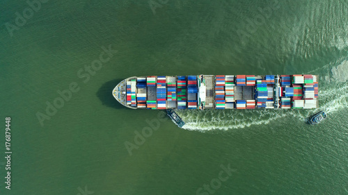 container,container ship in import export and business logistic,By crane,Trade Port , Shipping,cargo to harbor.Aerial view,Water transport,International,Shell Marine,transportation,logistic,trade,port