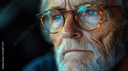 elderly, man, portrait, face, eye, goggles, beard, grey, hair, wrinkle, pensive, thoughtful, contemplative, wisdom, age, old, mature, senior, life, life events, time, expression, emotion, serious, calm, peaceful, introspective, person, human, closeup, detail, texture, skin, gaze, look, sharpened, depth, photo, image, visual