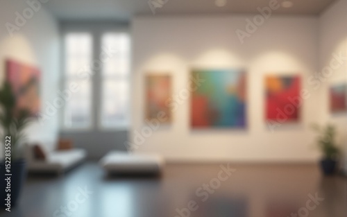 Contemporary art gallery background with abstract blur, offering copy space image. High quality