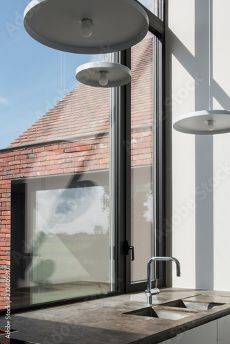sink, kitchen, modern, interior design, indoor, housing, house, home, glasses, exterior, elegant, design, building, brick, belgium, architecture, architectural, window, tap, style, room