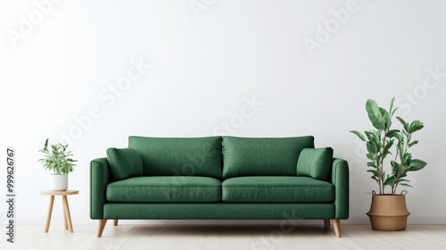 Contemporary Living Room Interior Design with Sofa and Empty White Wall