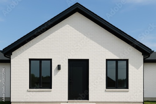 Contemporary Residential Exterior Featuring White Brick Facade and Dark Roof Accents
