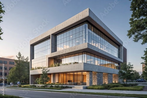 Contemporary Urban Corporate Building Design Integrating Concrete Stone and Glass Elements