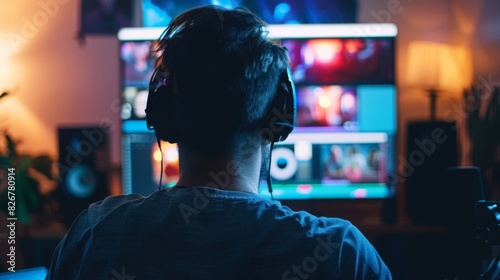 entertainment, working, online, computer, technology, broadcast, people, live, microphone, content, editor, gaming, streamer, creator, multimedia, confidence, expertise, excited, occupation, speaker, media, player, virtual, cyberspace, entrepreneur, desk, digital, cyberspace, neon, communication, indoor, living room, laptop, one person, portrait, young, man, home, web log, night, connection, creativity, hobby, office