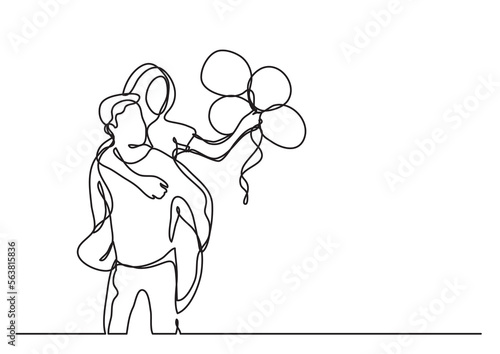 continuous line drawing vector illustration with FULLY EDITABLE STROKE of couple with balloons