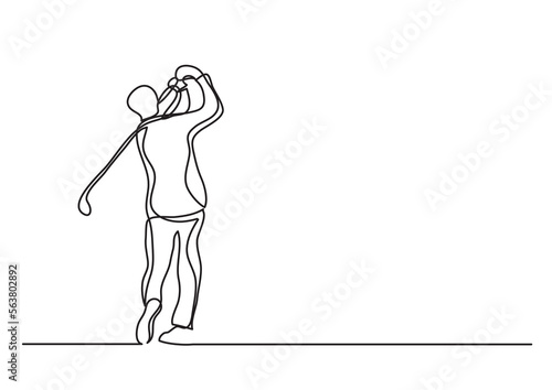 continuous line drawing vector illustration with FULLY EDITABLE STROKE of golf player
