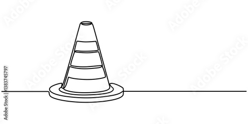 continuous line vector illustration design traffic cone, one line continuous drawing traffic cone, Road cone line continuous drawing vector. One line Road cone vector background. Road cone icon.