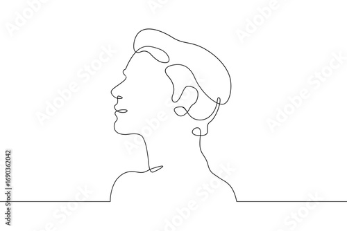 illustration, vector, outline, design, concept, doodle, signs, cartoon, continuous, line, drawing, art, line art, graphic, single line, isolated, simplicity, linear, vignetting, ink, man, portrait, male, profile, beauty, face, person, hair, fashion, background, elegant, model, white, modern, young, clean, coiffure, head, one person, side, black, minimalist, style, skin, elegance, lifestyle