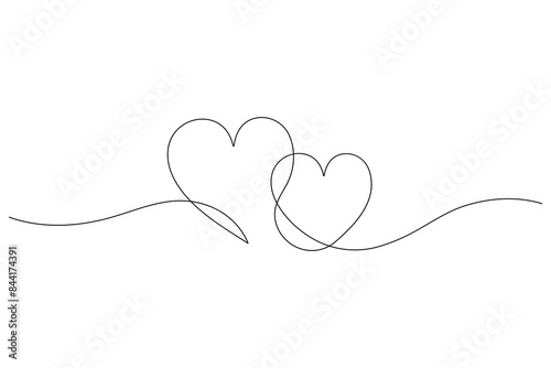 Continuous one line drawing of two hearts and romantic love symbol vector illustration