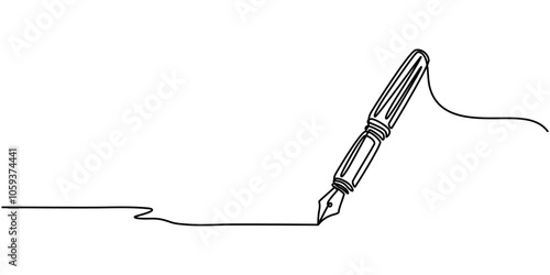 Continuous one line of fountain pen in silhouette on a white background. Linear stylized.Minimalist, Pen, Signature Continuous Line Icon, Fountain pen continuous one line drawing. Writing or signing.