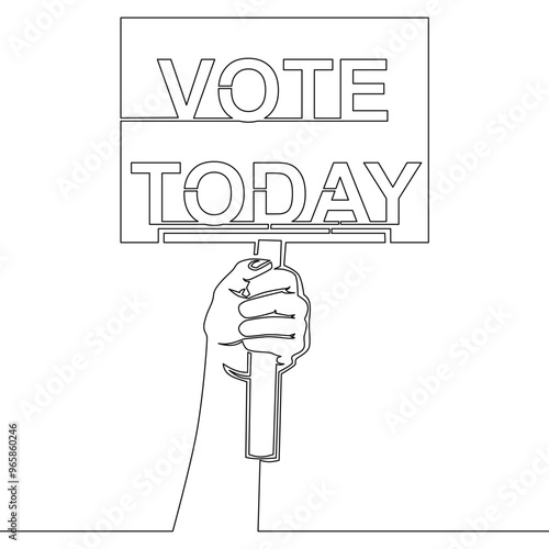 Continuous one single line drawing Black lettering Vote Today. The hand holds a sign with an inscription icon vector illustration concept