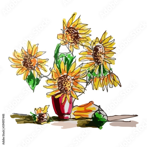 Contour drawing of color sunflower