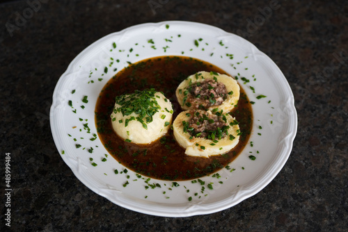 austria, austrian, background, bacon, ball, boiled, brown sauce, chives, closeup, cooked, cooking, cookery, delicious, diet, dinner, dish, dough, dumpling, dumpling, eating, european, food, fresh, german, epicure, ham, hand-made, healthy, homemade, lunch, meal, meat, national, plate, pork meat, potato, ready to eat, rustic, sauce, served, stuffed, tasty, tradition, traditional, vegetable