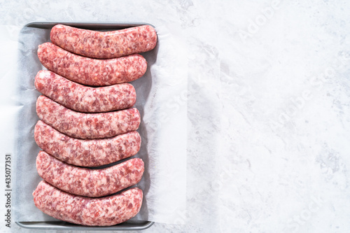 bratwurst, cooking, food, in a row, meat, raw, row, making, preparing, sausage