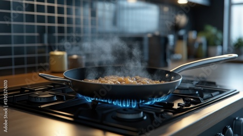 cooking, food, onion, pan, frying, stove, kitchen, gas, heat, steam, cooking oil, receipe, meal, dinner, breakfast, lunch, healthy, food photography, kitchen utensile, vegetable, cookery, home, modern, design, interior, apartment, home cooking, eatery, preparation, tasty, delicious, fresh, organic, healthy eating, diet, nourishment, chef, homemade, frying pan, gas-stove, closeup