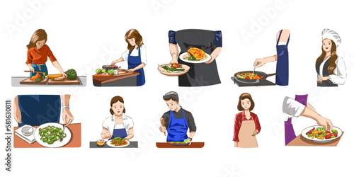 cooking, breakfast, cartoon, caucasian, clip art, collection, cook, couple, cute, design, dinner, eat, element, food, girl, girlfriend, happy, healthy, home, icon, illustration, ingredient, isolated, kitchen, lifestyle, logotype, love, lunch, meal, people, preparation, preparing, rice, romantic, salad, set, smiling, tasty, vector, woman