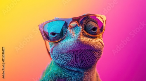 Cool chameleon wearing sunglasses against vibrant background. (1)