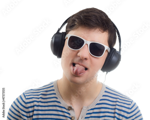 cool, type, man, boy, brash, sunglasses, spectacle, wayfarer, young, youth, teenage, confident, attractive, good mood, casual, headpiece, music, techno, disco, dance, dj, hipster, trendy, appearance, pose, grimace, pose, happy, luck, contented, merry, loose, casual, smile, laugh, style, fashion, fashionable, male, portrait, sympathetic, beaming, charisma, pickup