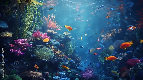 Coral reef scenery filled with vibrant sea life