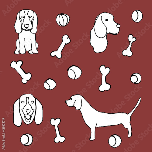 beagle, bulldog, dog, friends, companion, ball, toy, dog, animal, puppy, pet, white, cute, labrador, retriever, isolated, canino, mammal, gold, cartoon, illustration, pet, baby, breed, cat, golden retriever, studio, brown, animal, dachshund, hound