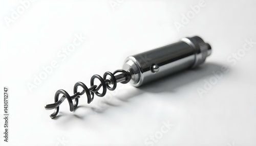 corkscrew, cork, tool, wine, isolated, screw, opener, bottle, metal, alcohol, white, spiral, utensil, open, drink, kitchen, handle, object, background, bar, beverage, metallic, steel, nobody, old, closeup, stainless, top, view