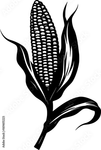 corn, cob, maize, vegetable, outline, vector, food, healthy, organic, vignetting, doodle, clip art, logotype, plant, kernel, grain, agricultural, harvest, ingredient, cooking, ink, hand-drawn, illustration, produce, farm, fresh, edible, isolated, natural, contour, garden, kitchen, artistic, drawing, simple, minimal, vegan, branding, flat