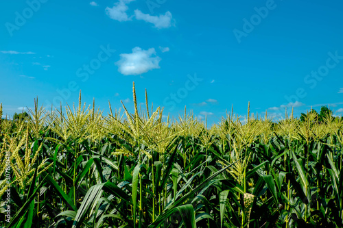 field, corn, sky, agriculture, nature, farm, green, plant, crop, blue, grass, summer, landscape, food, maize, farming, harvest, cornfield, rural, cloud, meadow, fresh, countryside, grow, growth, flora, organic, vegetable, forage, photo, gallery, planting, culture, plantation, decor, cereal, cornflake, natural, art, useful, sugar, foodstuff