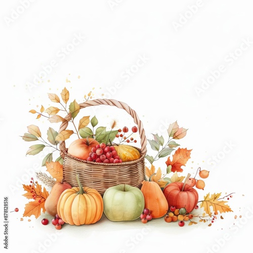 cornucopia, clip art, autumn, harvest, element, watercolor, illustration, rich, colours, isolate, theme, motif, produce, design, nature, table, festive, decor, image, graphic, palette, background, pattern, bright, texture, hand-made, symbol, rustic, basket