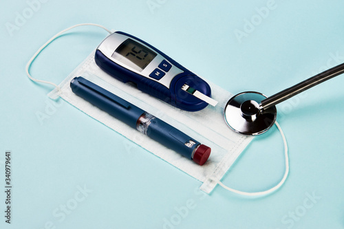 pose, greatest, risk, diabetes, insulin, pen, diabetic, syringe, blood, sugar, test, medicals, face, mask, blue, background, copy space, closeup, medicine, disease, health, laboratory, control, disease, hospital, virus, equipment, research, pandemic, patient, pharmacy, analysing, injection, glucose, health care, danger, infection, protective, quarantine, flu, stethoscope, epidemic, corona, health care, no people