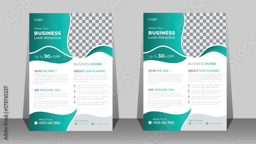 Corporate business flyer template design with organic shapes.
