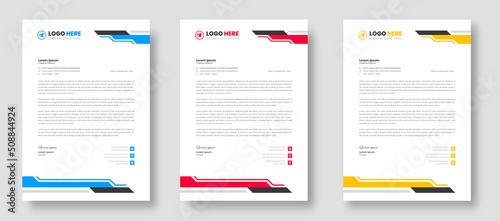 corporate modern business letterhead design template with yellow, blue and red color. creative modern letterhead design template for your project. letter head, letterhead, business letterhead design.