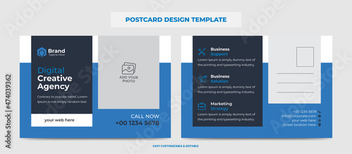 Corporate Modern Business Postcard Design Template. Blue Color Double Sided Postcard Design