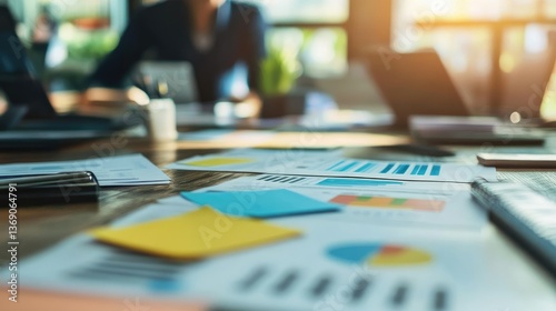 Corporate strategy board with workflow breakdowns and key performance indicator tracking.